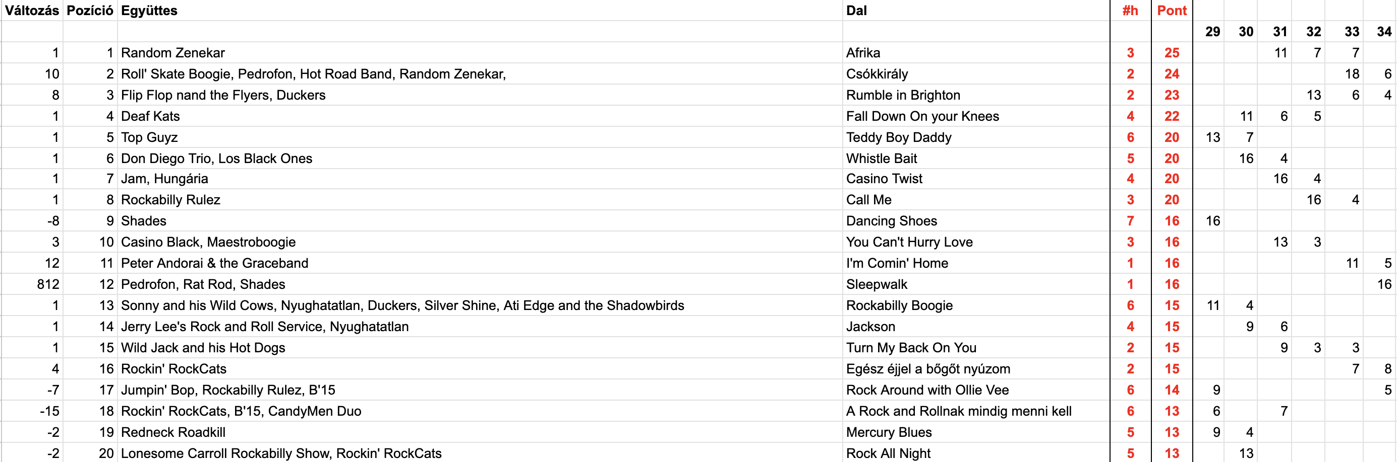 2025 Harmincnegyedik hét, Top 20