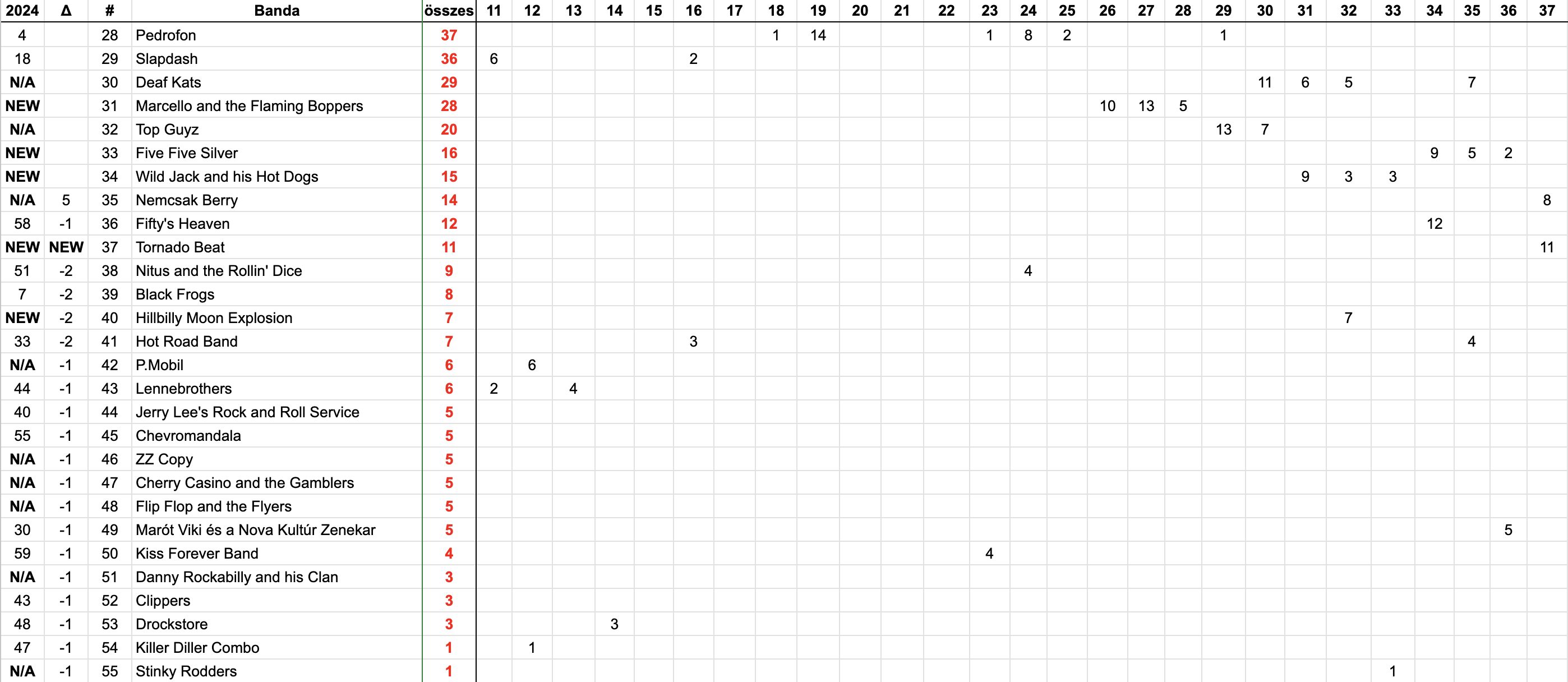 Ismét húsz pont felett a Lantos Gábor & the King's Men előnye a Rockin' RockCats előtt. A Random zenkar visszavette a harmadik helyet a Redneck Roadkill-től.