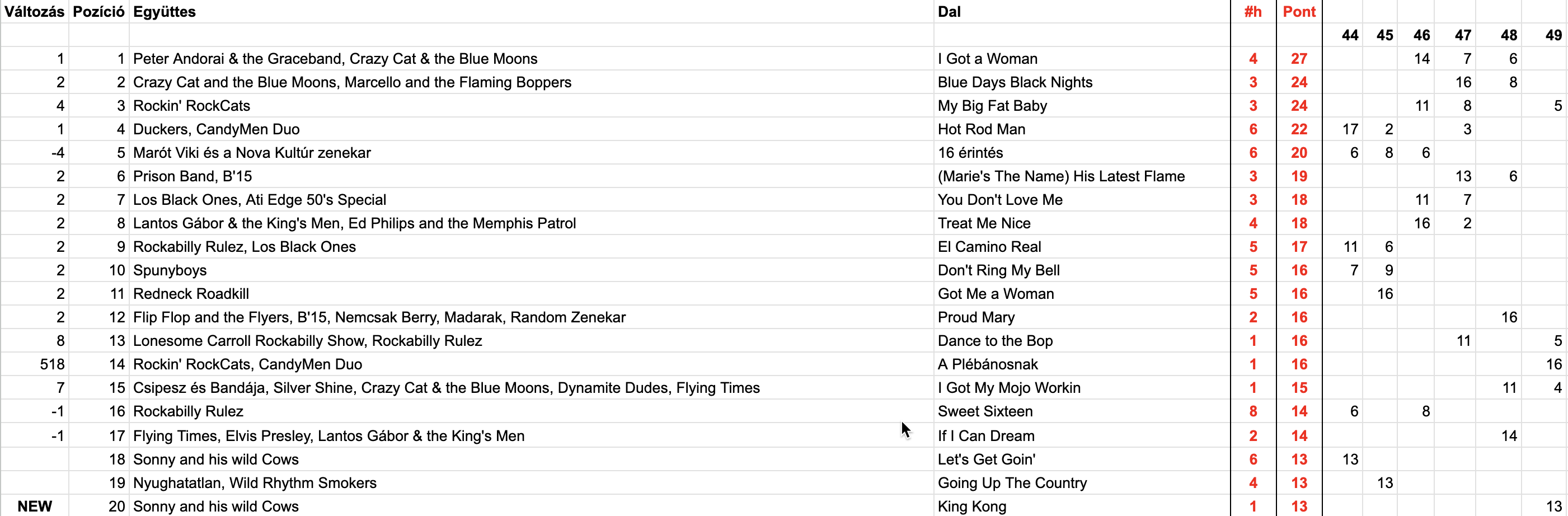 2025 Negyvenkilencedik hét, Top 20