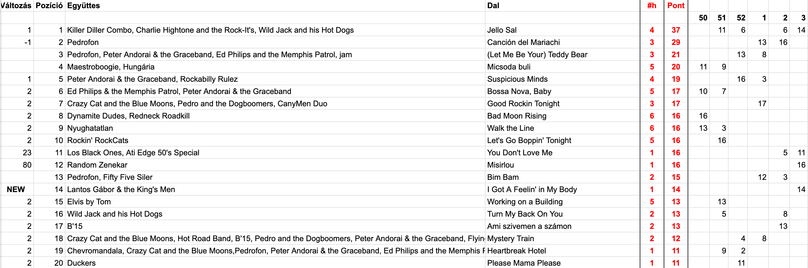 2026 Harmadik hét, Top 20