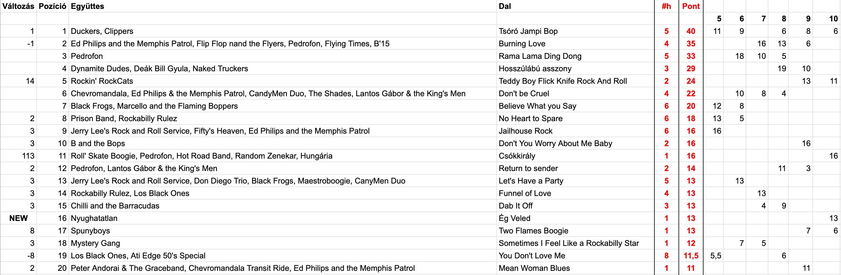 2026 Tizedik hét, Top 20
